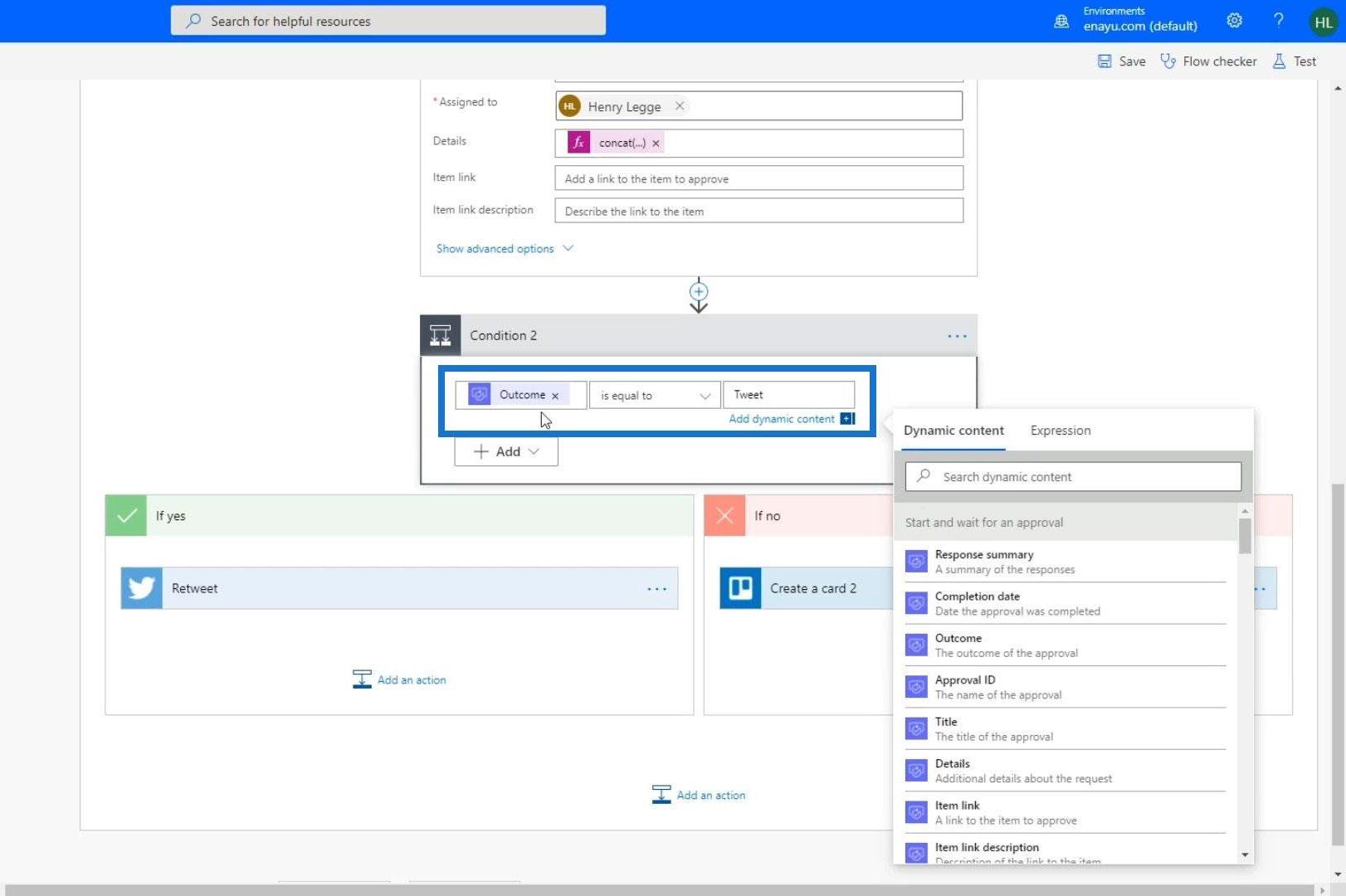 現在讓我們修改條件並將其更改為“結果等於推文”。