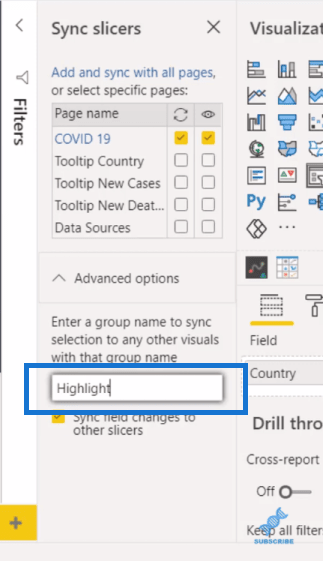 現在兩個過濾器同步了。因此,當我選擇第一個切片器(例如英國)時,我們可以看到在第二個切片器上選擇了英國。