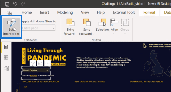 我想在散點圖上看到所有國家。要解決此問題,我將單擊過濾器,然後轉到“格式”,然後“編輯交互”。