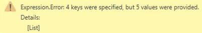 當您單擊錯誤旁邊的空格時,您會看到一條錯誤消息,指出僅指定了 4 個鍵,但提供了 5 個值。