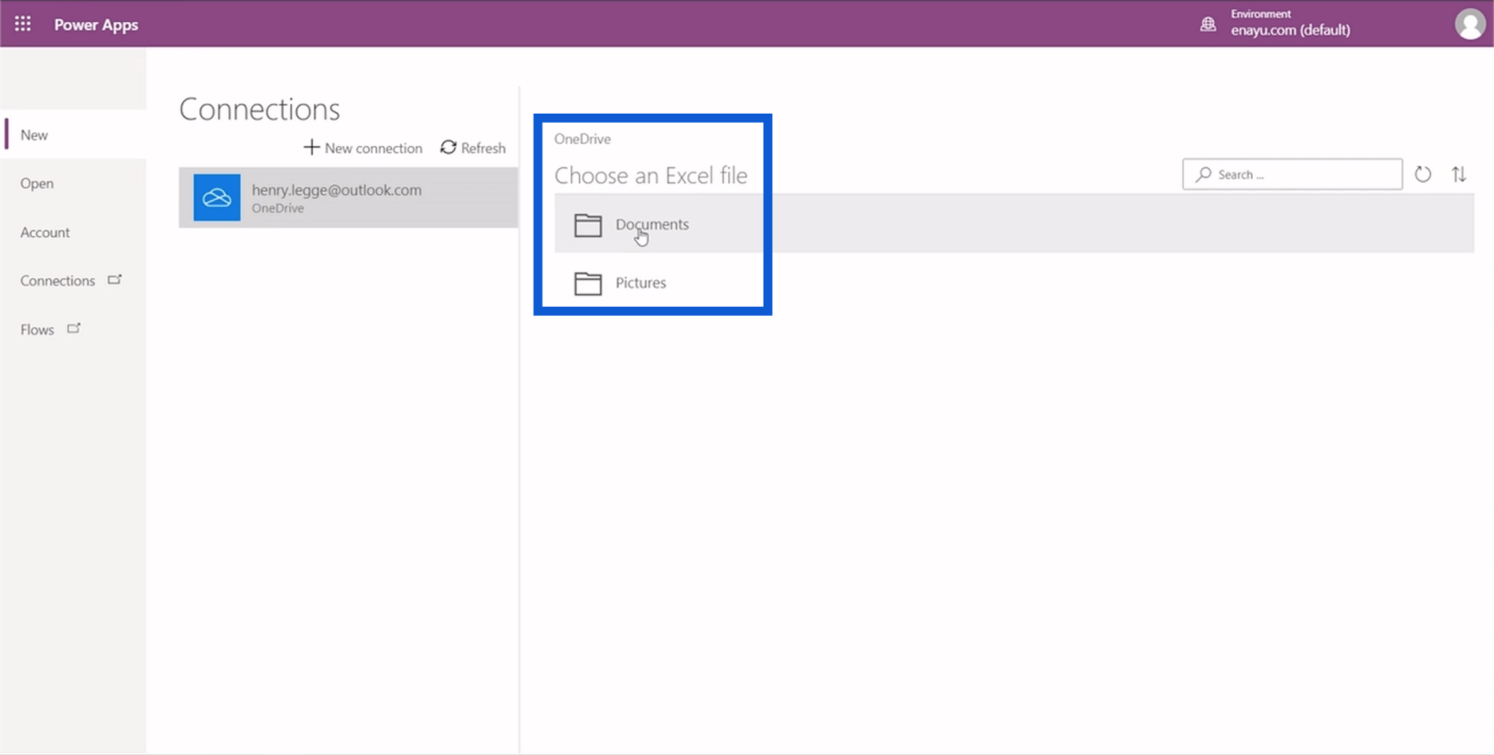 讓我們通過連接您的 OneDrive 帳戶開始設置您的 Power Apps 環境。