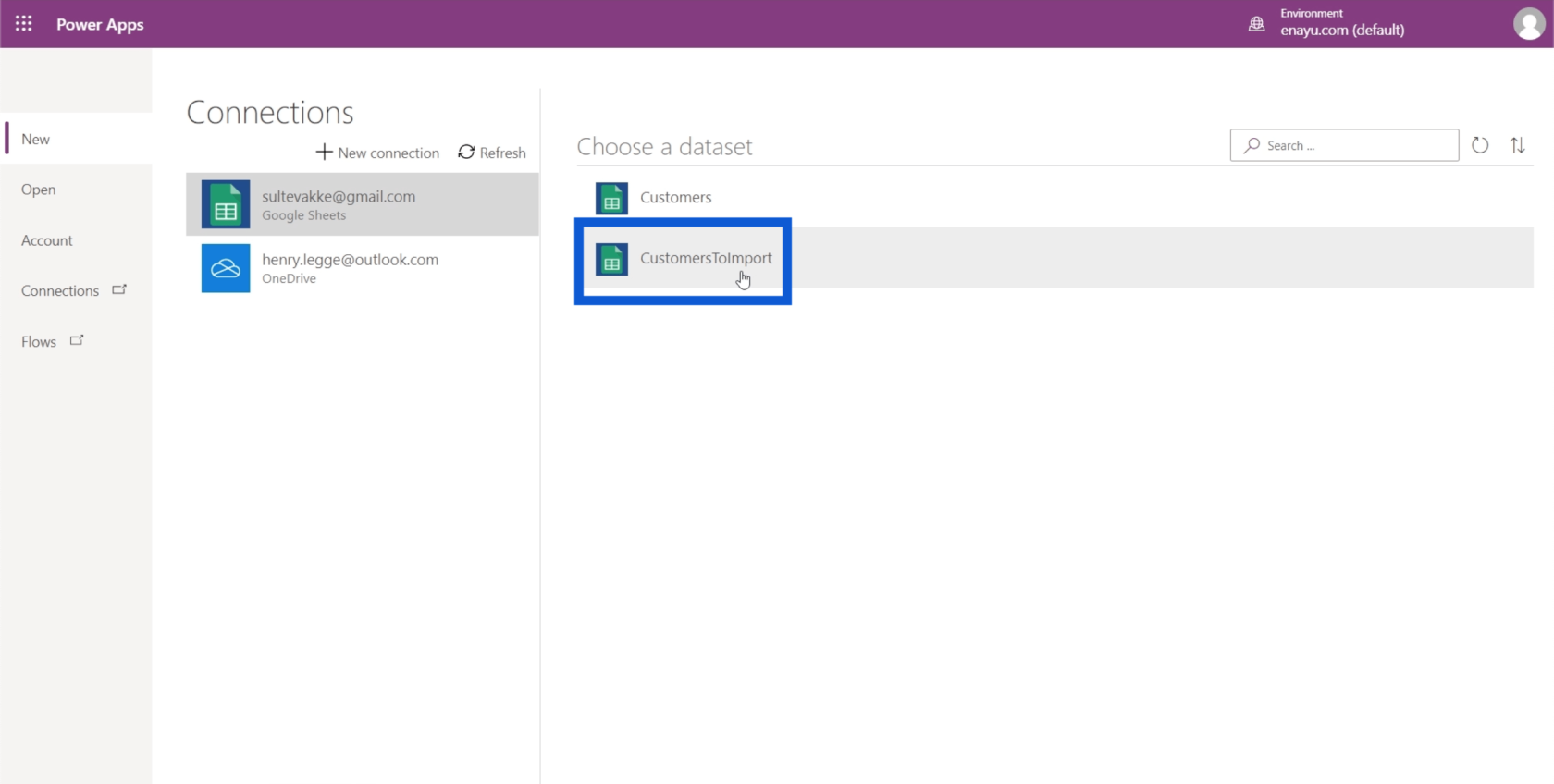 因為 Power Apps 允許您操作和編輯數據,所以連接到允許您無縫執行此操作的數據源總是更好。這就是為什麼我不建議從文件系統上傳數據集。