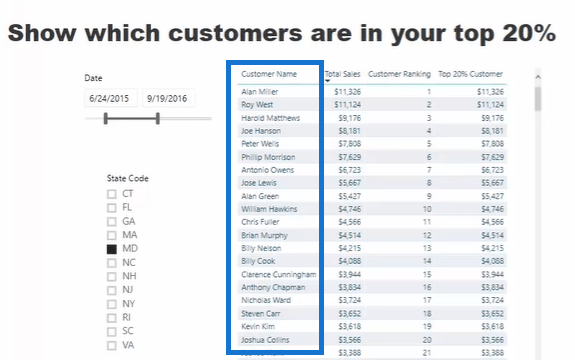之後,我將向您展示基於任何州的動態客戶及其銷售額。