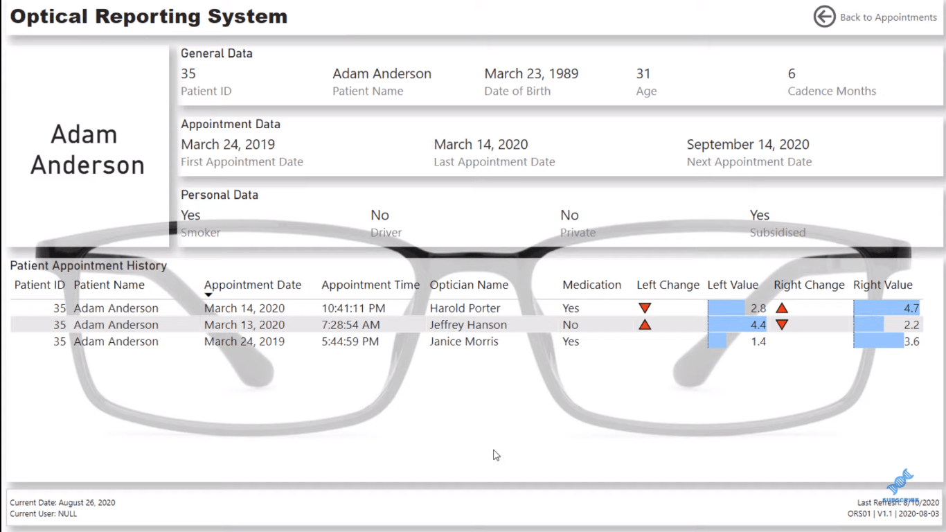 我們可以深入了解特定的配鏡師或患者。我們有一些有趣的切片器,我們可以在其中查看一些逾期客戶,他們需要跟進預約或安排未來的預約。