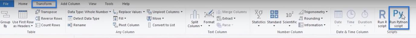 過濾掉後,轉到轉換並運行Python腳本。我們將在這裡編寫所有代碼,因為代碼不多。