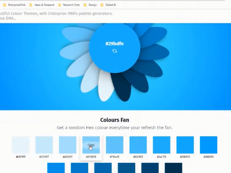 在 Analyst Hub 中,我們有一個Color Theme Generator。您可以通過多種方式在此處創建顏色主題。我個人喜歡 Color Fan。主題的問題是您不想讓報表中的顏色過於復雜來創建無縫主題。具有相似的調色板,但只是不同的色調實際上在報告設計中非常有效。