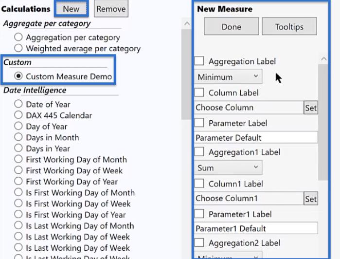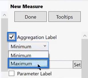 在我們的New Measure中,首先創建一個聚合標籤。勾選聚合標籤旁邊的框並在下拉選項中選擇最大值 以避免出現裸列。