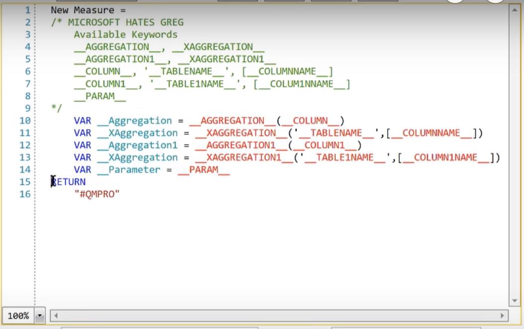 讓我們複製此 DAX 代碼並返回到 Quick Measures Pro。