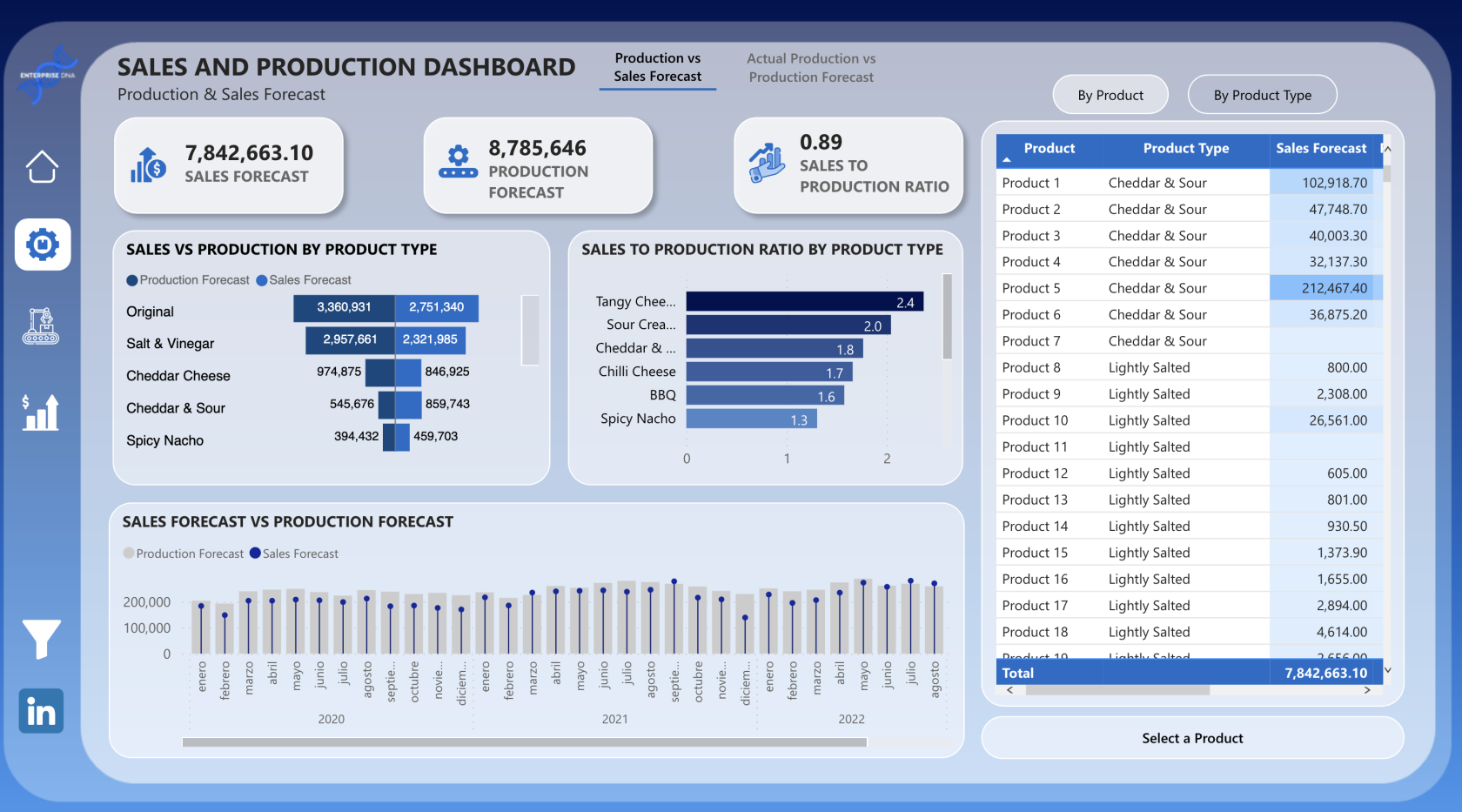6) 銷售和生產儀表板 LuckyTemplates 儀表板示例